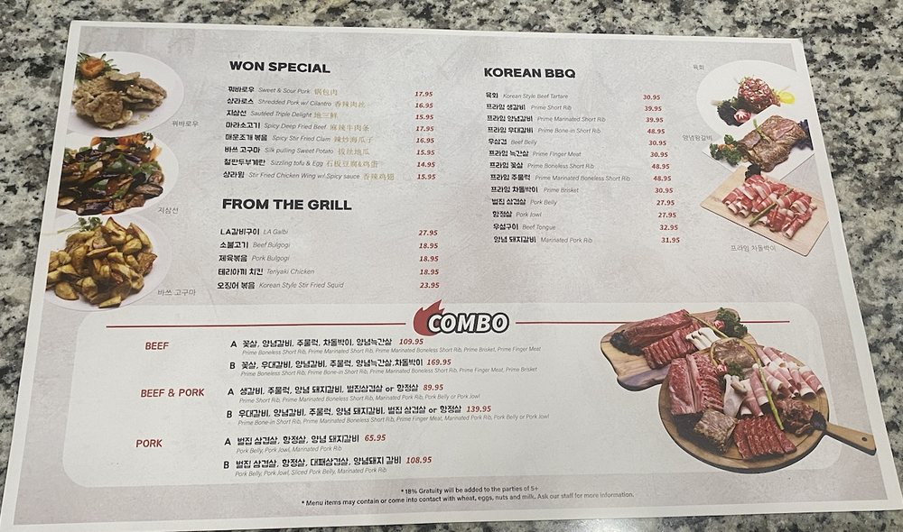 Welcome to Won BBQ, where Korean barbecue takes center stage! Located in the heart of Plano, TX, this vibrant eatery offers an unforgettable dining experience highlighted by a menu brimming with delectable options. From the grill, you can savor the rich flavors of LA Galbi and Beef Bulgogi, or dive into the tender delights of Pork Bulgogi and grilled mackerel. Each dish showcases high-quality meats that are perfectly seasoned and expertly cooked. The unique Hot Stone Bibimbap varieties—available with beef short rib, spicy pork, and seafood—offer a delightful twist on a classic favorite.